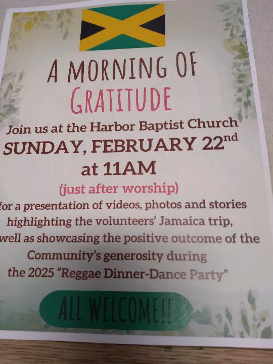 Join us for a presentation of videos, photos and stories highlighting the volunteers' Jamaica trip, well as showcasing the positive outcome of the Community's generosity during the 2025 "Reggae Dinner-Dance Party"